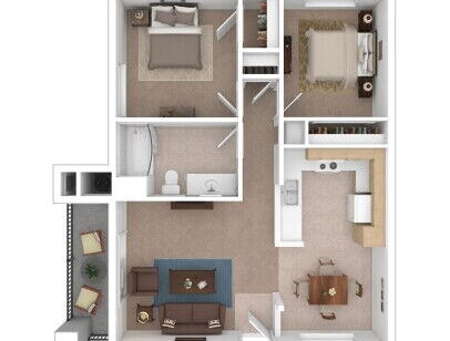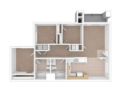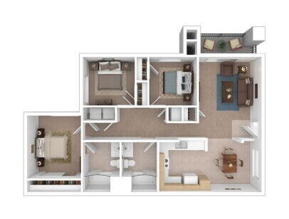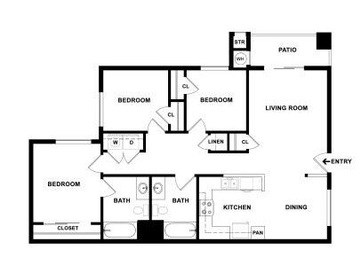 Our spacious three-bedroom Glenview floor plan offer two full bath, washer and dryer connections, and a private patio or balcony.